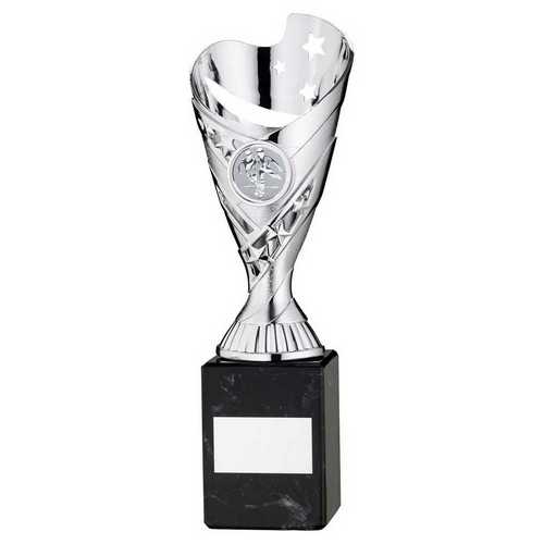Silver Plastic Sabre Cup On Black Marble Assembled Trophy (1" Cen) - 7.25in
