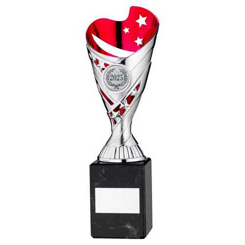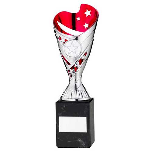 Silver|pink Plastic Sabre Cup On Blk Marble Assembled Trophy (1" Cen) - 8in