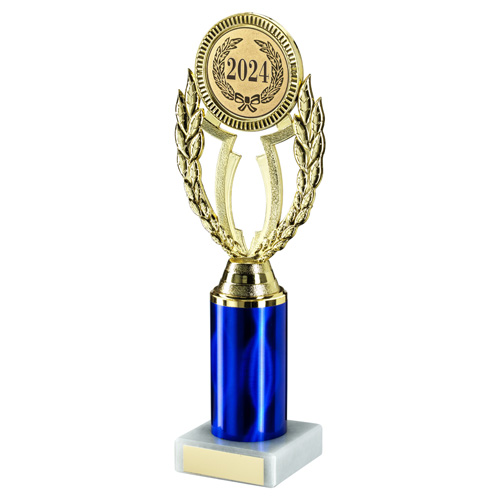 Gold|blue Wreath Holder Assembled On Marble - (2" Cen|3" Tube) 9.75in