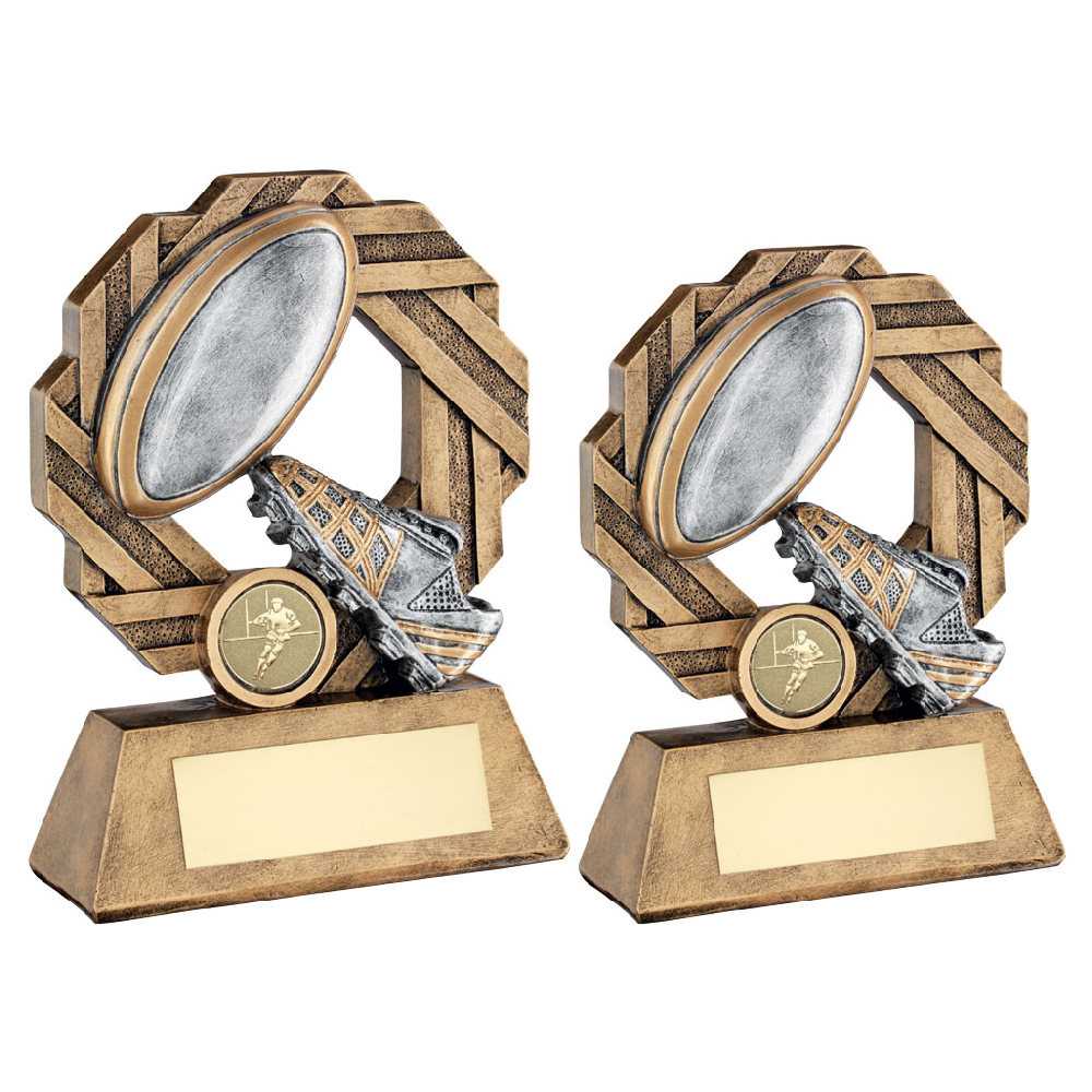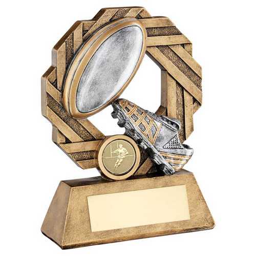 Brz|pew|gold Rugby Octo Ribbon Series With Plate (1in Centre) - 7.5in