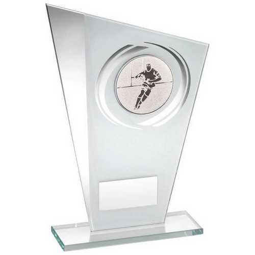 White|silver Printed Glass Plaque With Rugby Insert With Plate - 8in