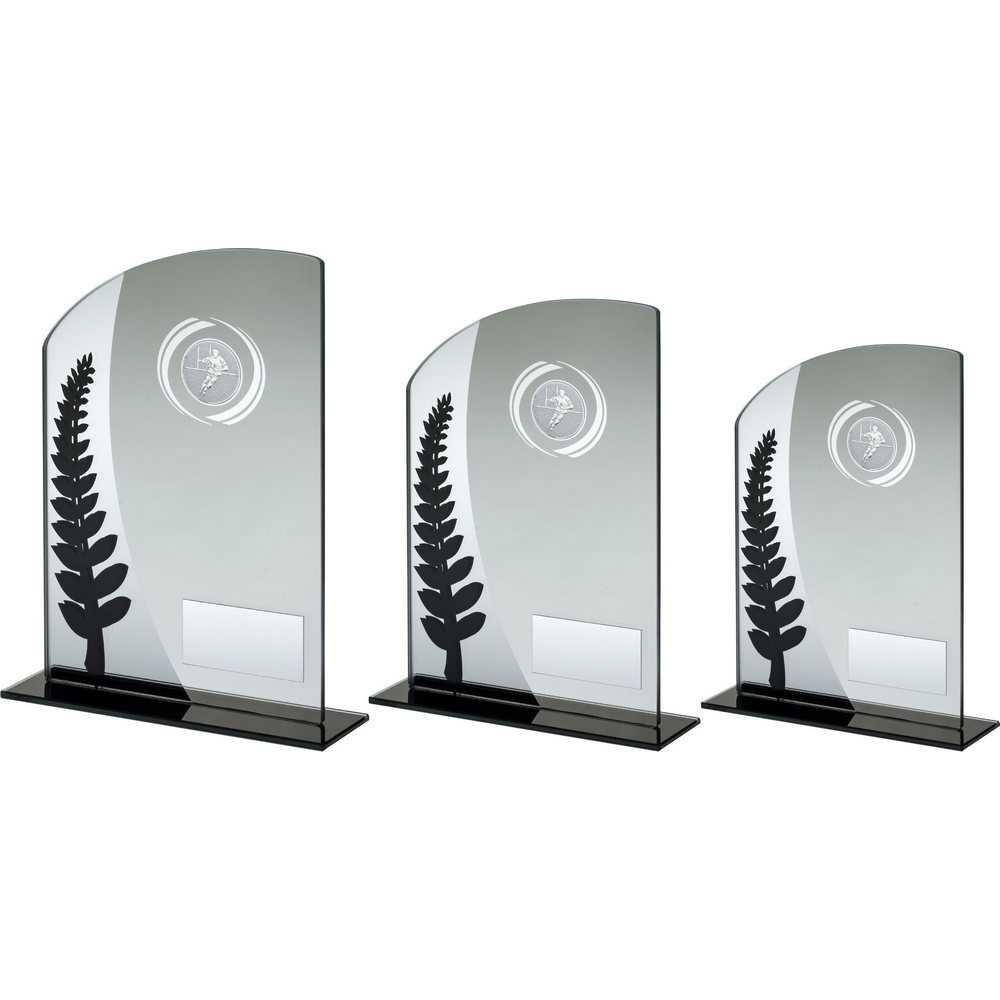 Jade Glass Plaque With Black|silver Detail With Rugby Insert And Plate - 7.25in