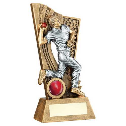 Brz|pew|red Male Cricket Bowler On Backdrop With Plate (1in Centre) - 7.5in