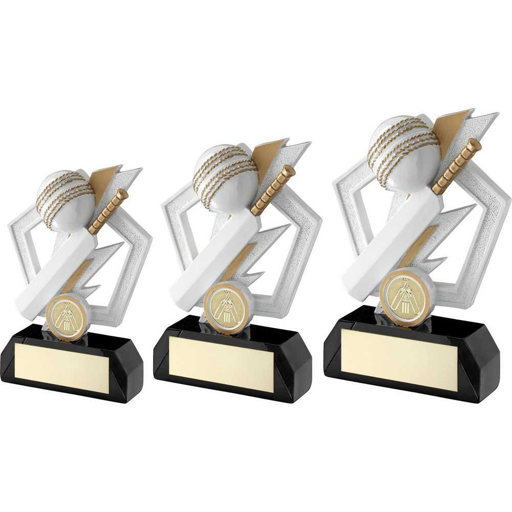 White|gold|black Cricket Bat And Ball On Pentagon With Plate (1in Cen) - 7.75"