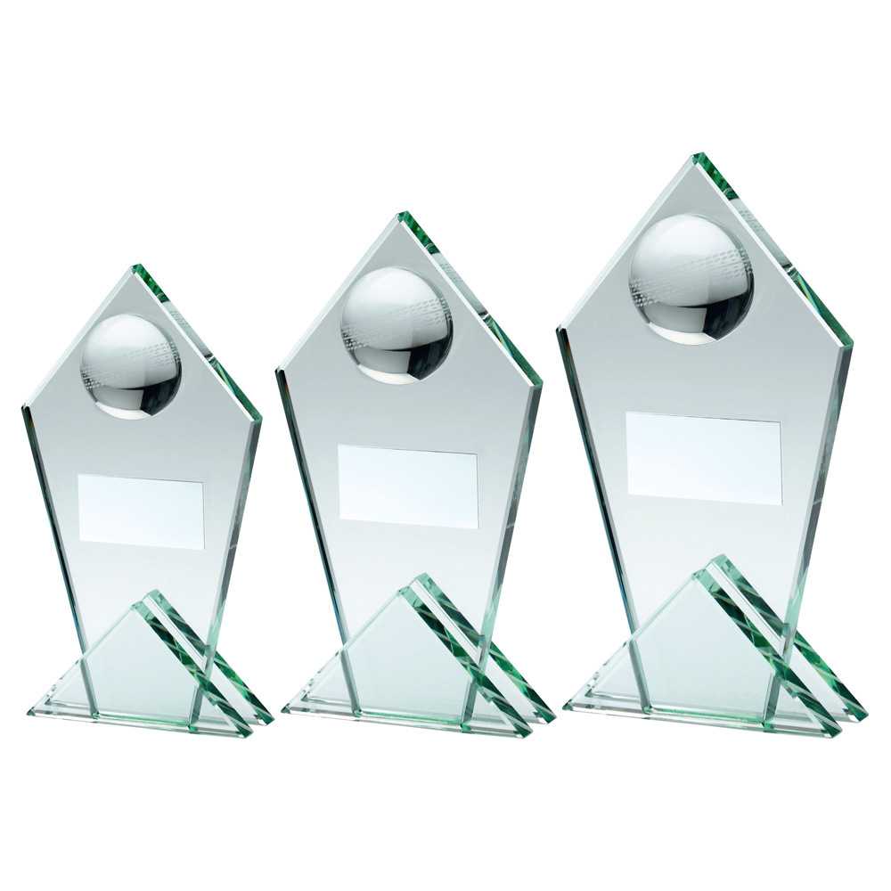 Jade Glass Pointed Plaque With Half Cricket Ball And Plate - 8.5in