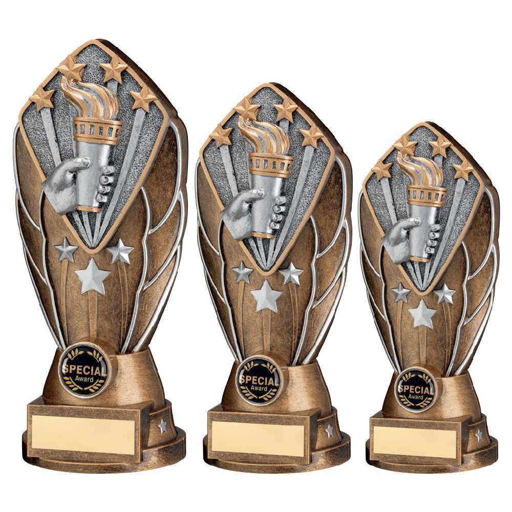 Brz|silv Diamond Column + Victory Torch Disc & Plate (1in Cen) - 8in