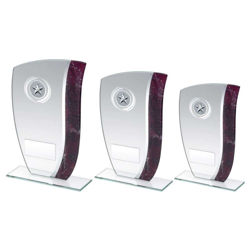 Jade Glass With Claret|silver Marble Detail With Plate (1in Centre) - 8in