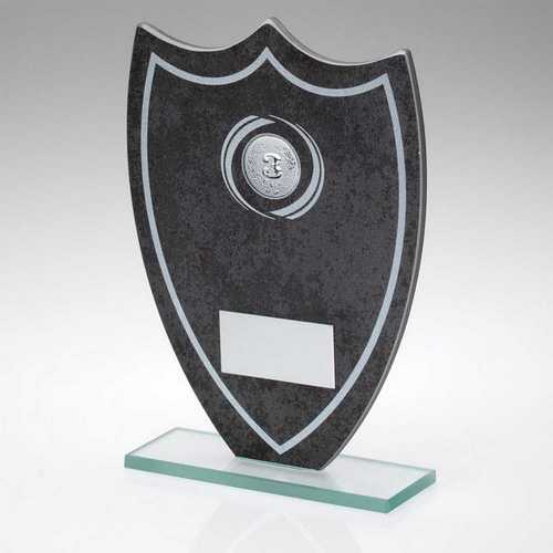 Stone Effect Glass Shield With White Wreath & Lines + Plate (1in Cen) - 8in