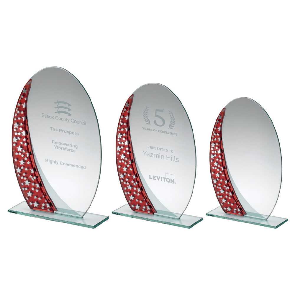 Jade Glass Oval Plaque With Red|silver Star Design (4mm Thick) - 7.25in