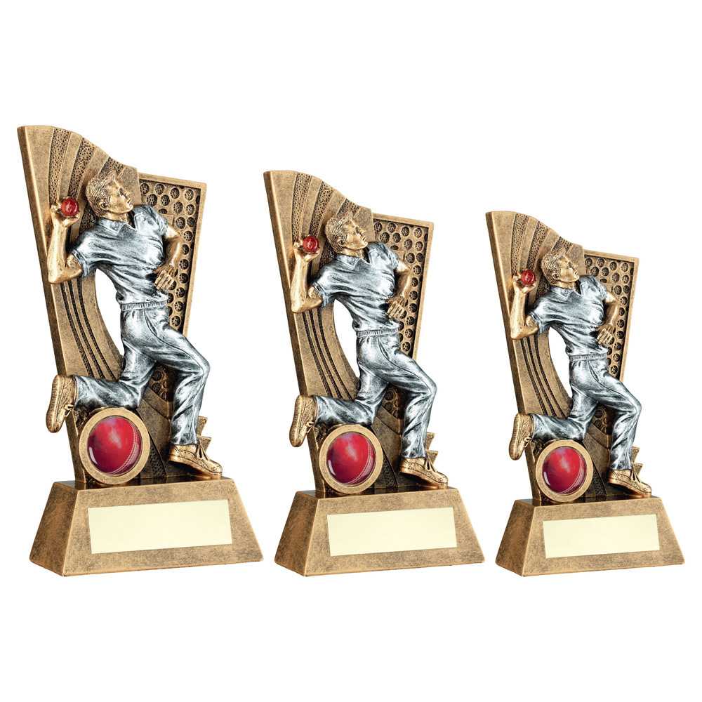 Brz|pew|red Male Cricket Bowler On Backdrop (1in Centre) - 7.5in