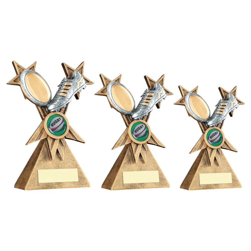 Brz|pew|gold Rugby Ball And Boot On Tri Star Riser (1in Centre) - 6in