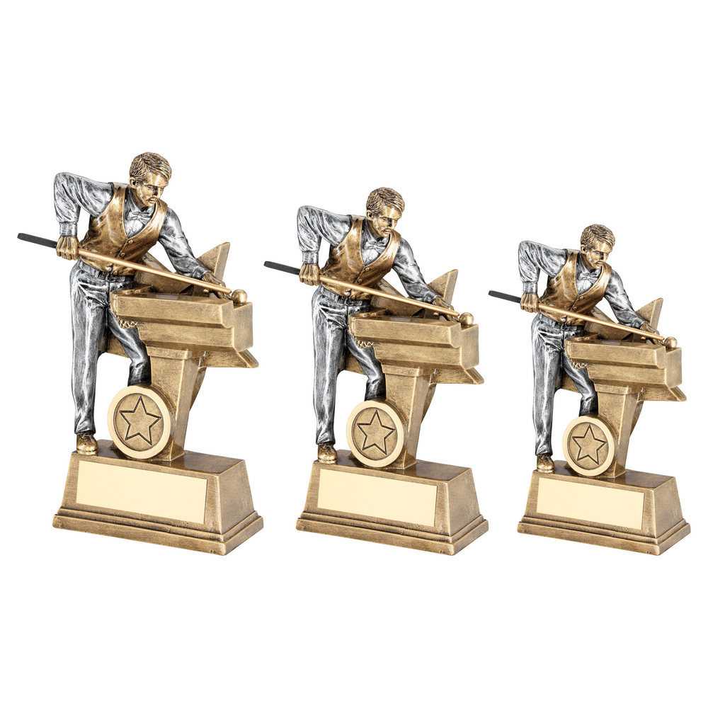 Brz|pew Male Pool|snooker Figure With Star Backing (1in Centre) - 6in