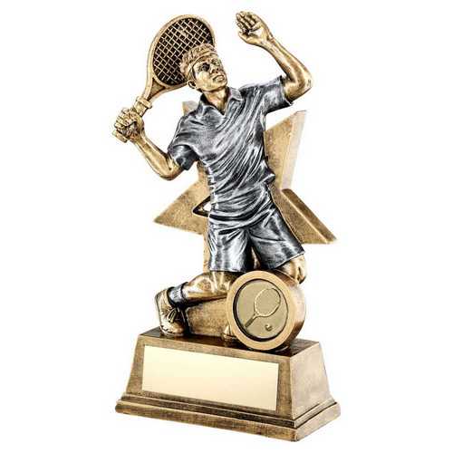 Brz|gold|pew Male Tennis Figure With Star Backing (1in Centre) - 6in