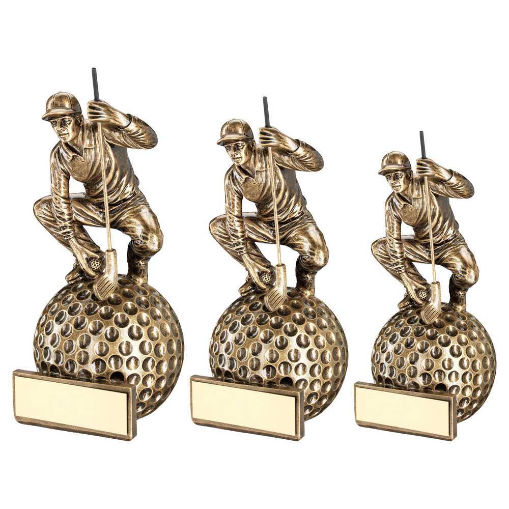 Brz|gold Crouching Golfer On Golf Ball Base - 8.75in