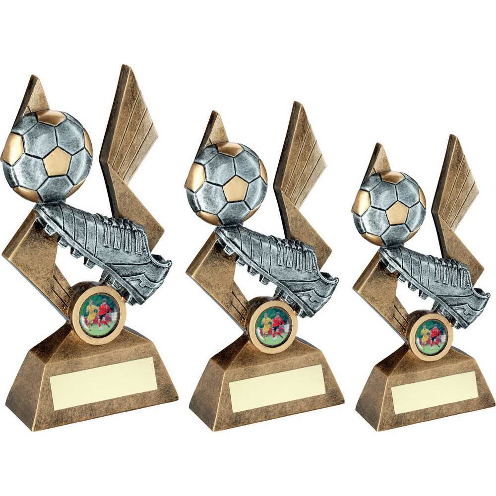 Brz|pew|gold Football And Boot On Pointed Backdrop (1in Centre) - 10in