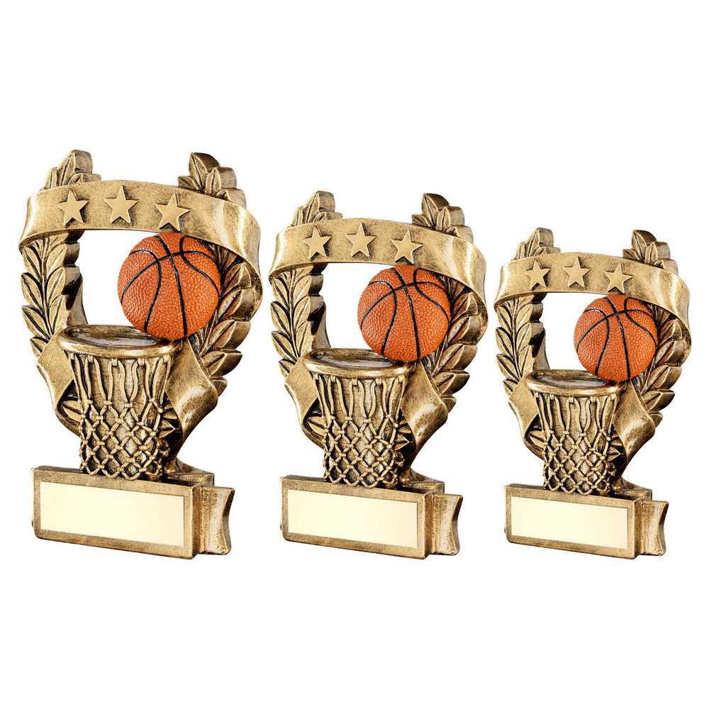 Brz|gold|orange Basketball 3 Star Wreath Award - 5in