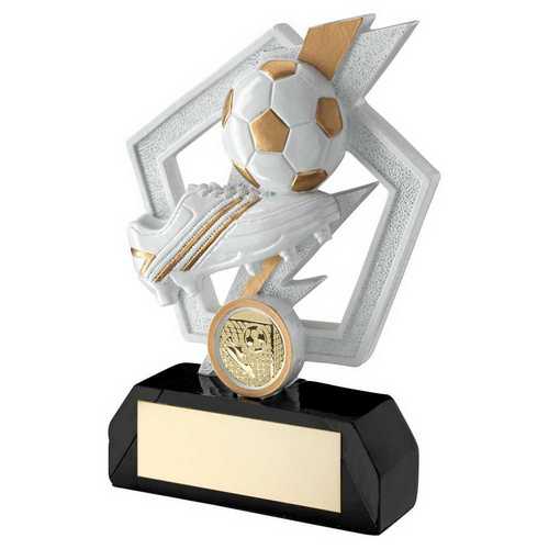 White|gold|black Football And Boot On Flash Pentagon (1in Centre) - 5.25in