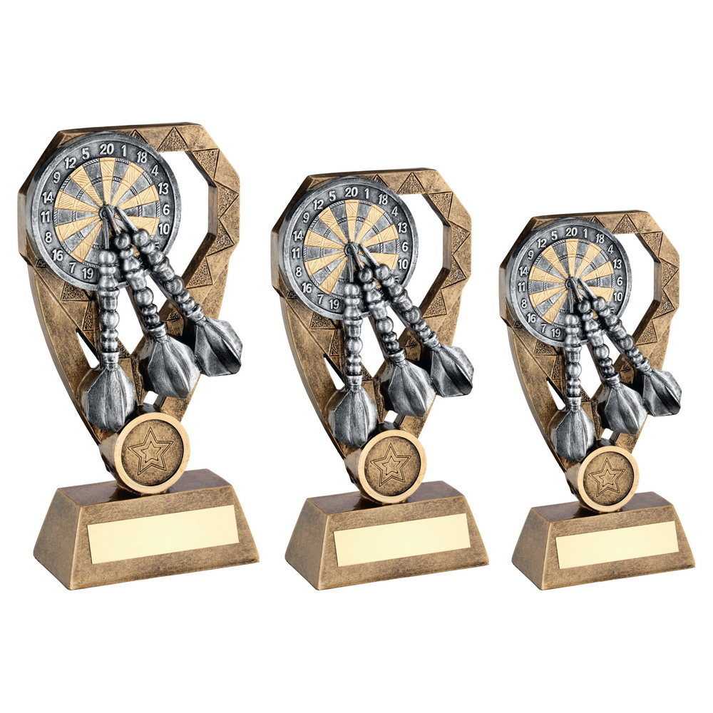 Brz|pew|gold Darts With Dartboard On Diamond (1in Centre) - 6in