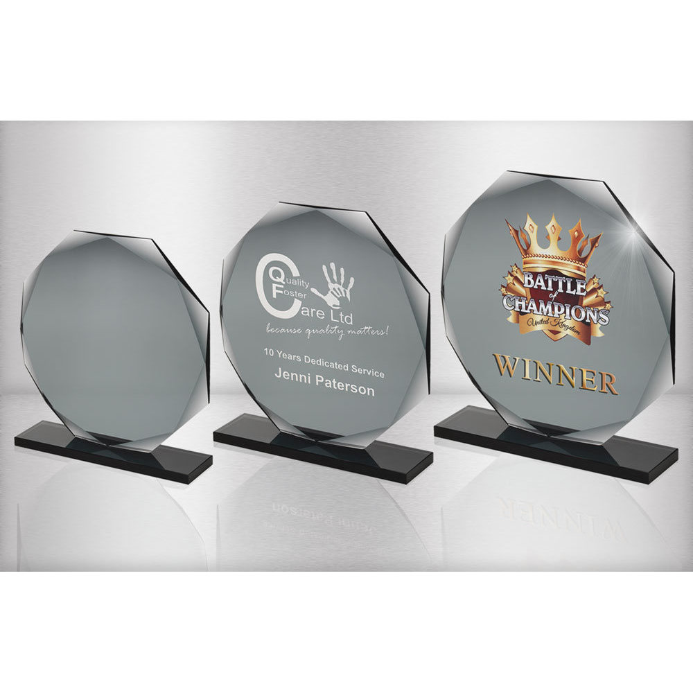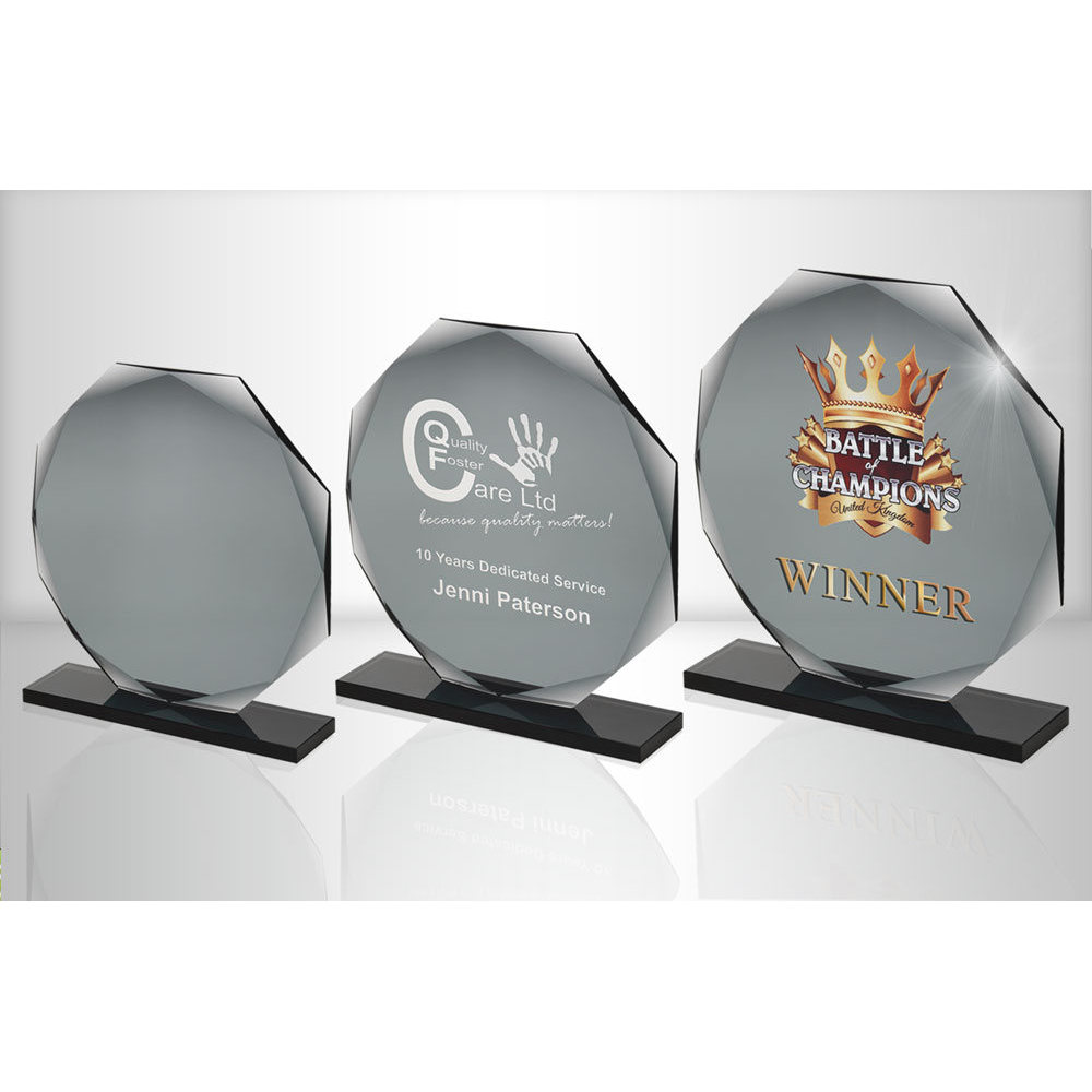 Smoked Black Glass Octagon Plaque (10mm Thick) - 8.75in