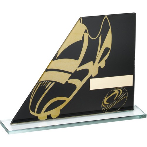 Xxx Black|gold Printed Glass Plaque With Rugby Boot|ball - 5.75in