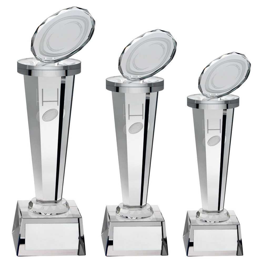 Clear Glass Column With Lasered Rugby Image - 8in