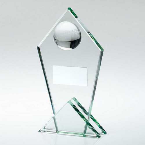 Jade Glass Pointed Plaque With Half Cricket Ball - 8.5in