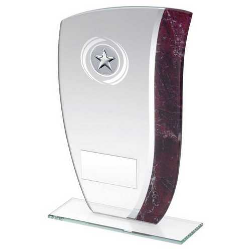 Jade|claret|silver Marble Printed Glass Plaque (1in Centre) - 8in