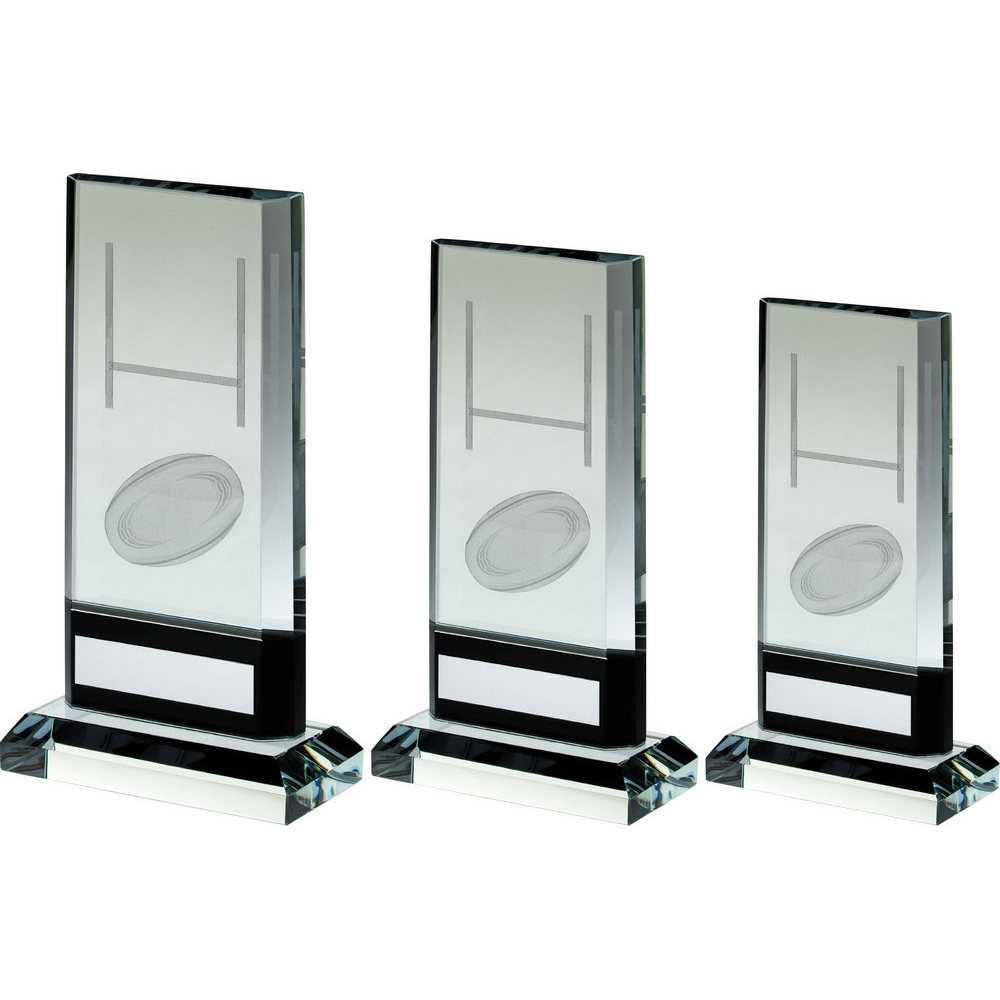 Clear|black Glass Plaque With Lasered Rugby Image (15mm Thick) - 8.25in