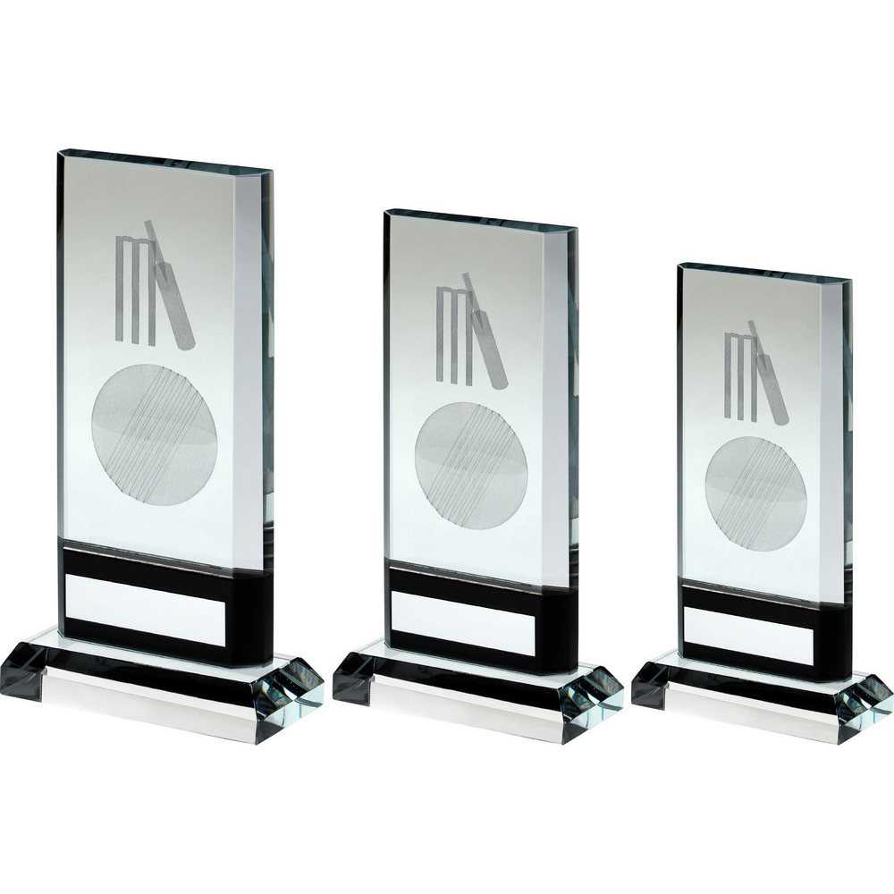 Clear|black Glass Plaque With Lasered Cricket Image (15mm Thick) - 8.25in
