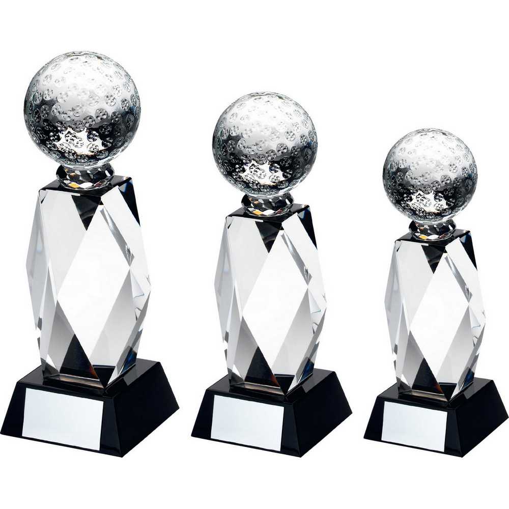 Clear Glass Column And Golf Ball Black Base - 6.5in