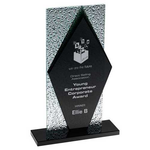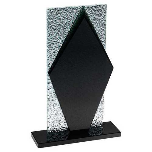 Black Glass Diamond And Base With Clear Frosted Backdrop - 9.75in